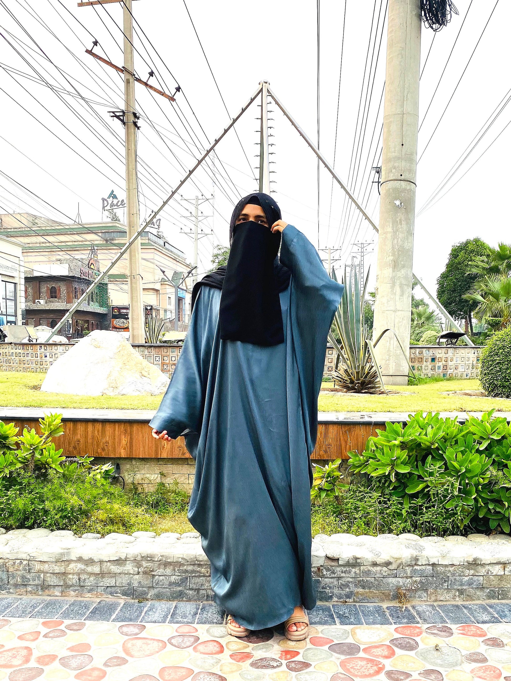 This elegant gray abaya is crafted from Premium Textured Nidah Fabric, offering a soft yet structured drape ideal for everyday modest wear. The closed umbrella cut provides a graceful flare without compromising coverage, making it suitable for both casual and semi-formal occasions.